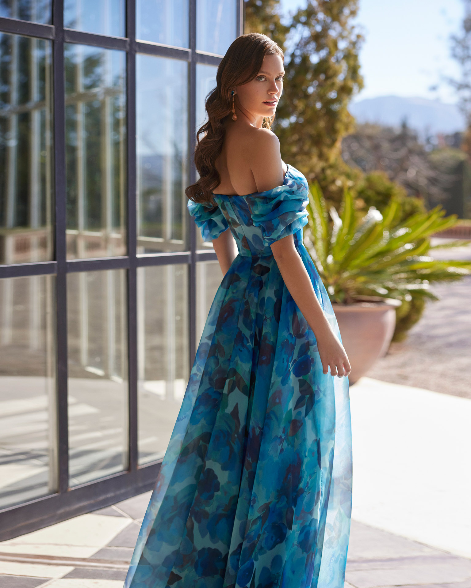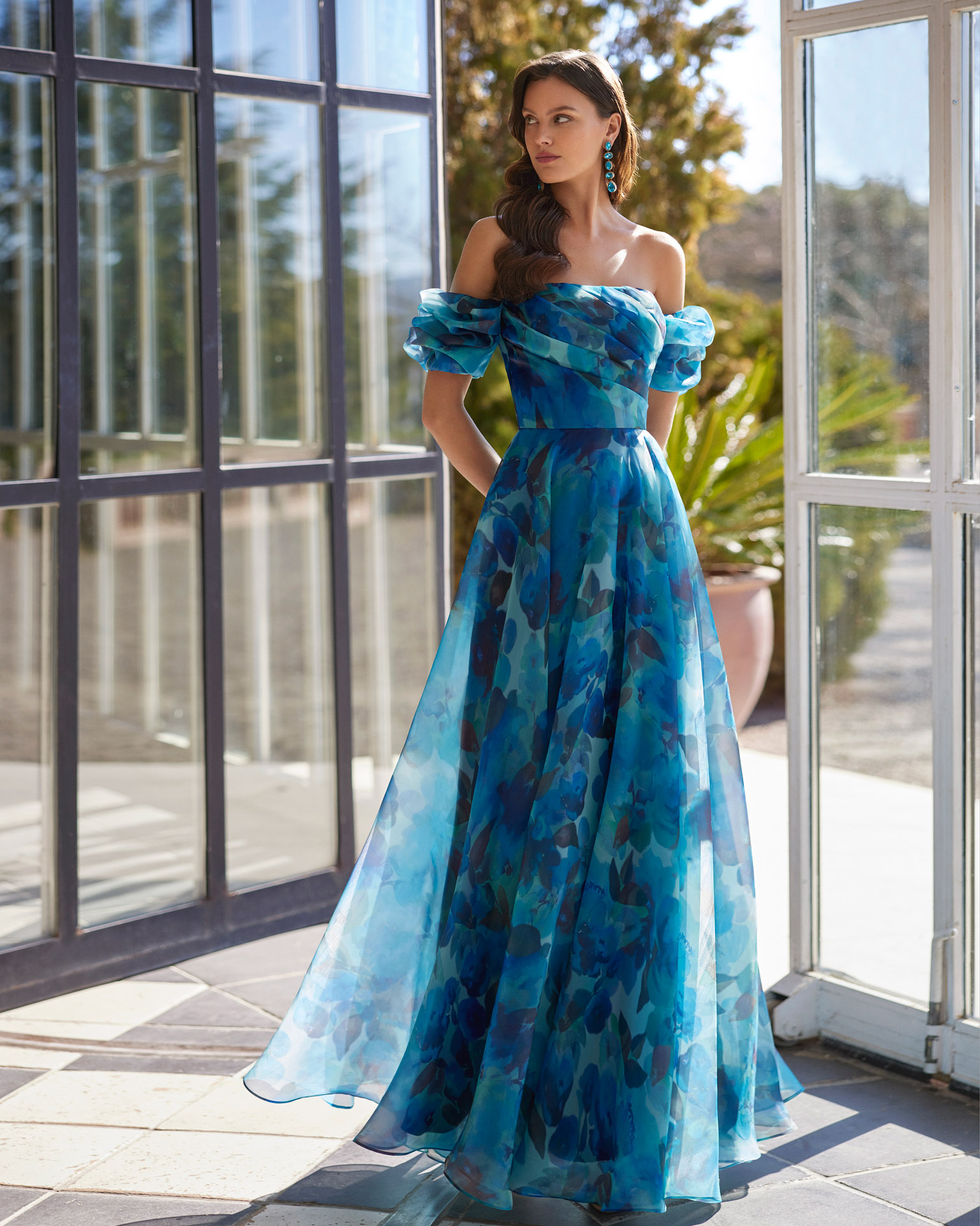 Abito da cerimonia lungo con spalle scoperte. L’abito da cerimonia 9JA7 della collezione di Marfil Barcelona è disponibile presso il nostro atelier di Rovigo, comodo per chiunque cerchi un abito da damigella o da invitata a un matrimonio a Rovigo, Padova, Venezia, Chioggia, Ferrara.