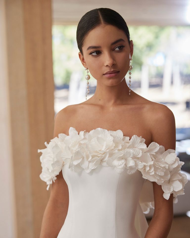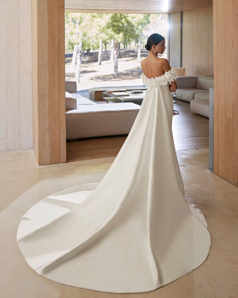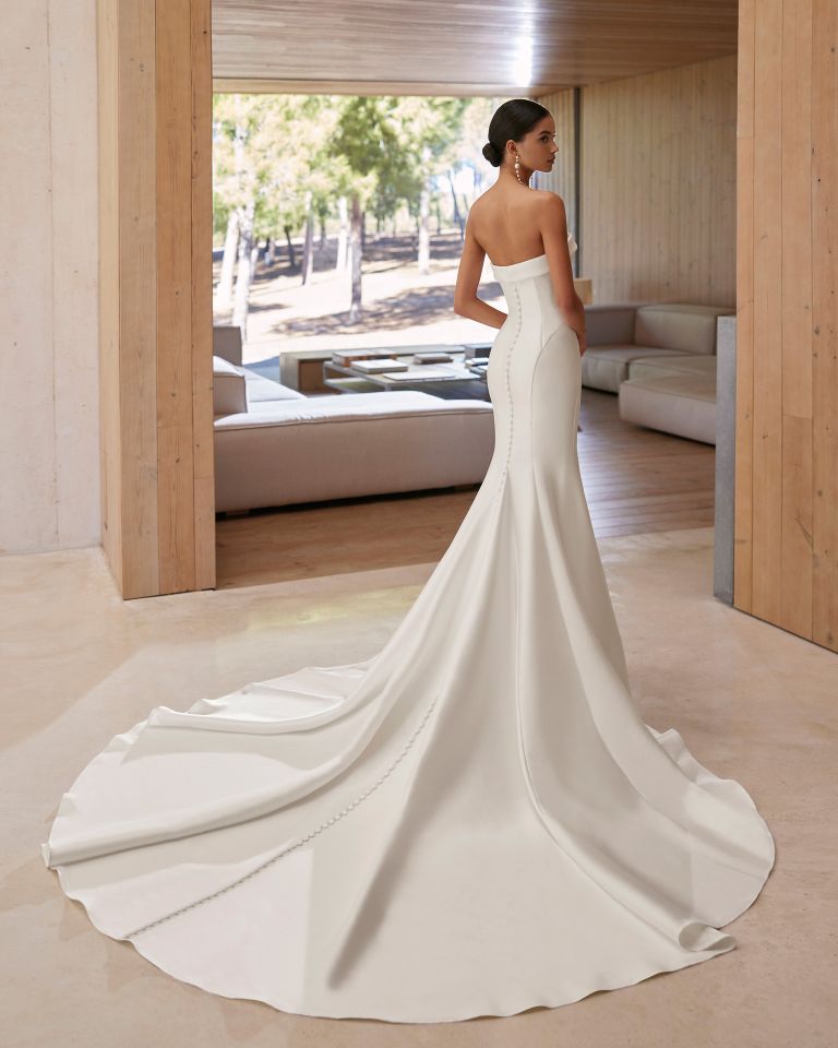 Abito a sirena minimale della collezione Rosa Clarà. Disponibile nel nostro atelier di Rovigo.