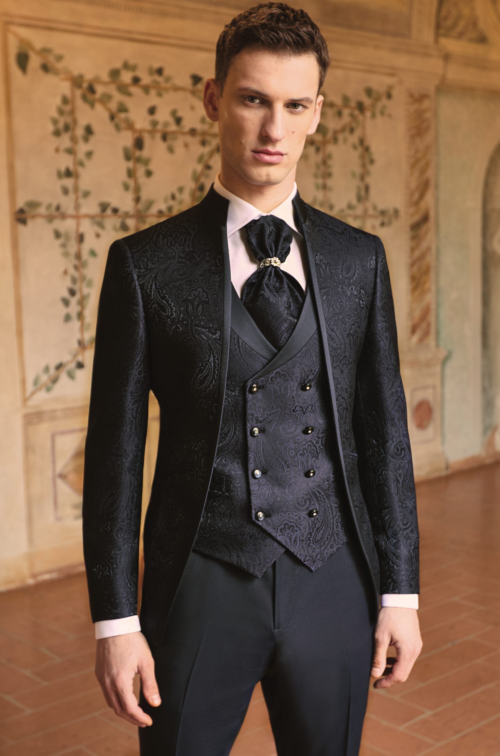 Abito da sposo nero damascato Luigi Bianchi collezione 2025